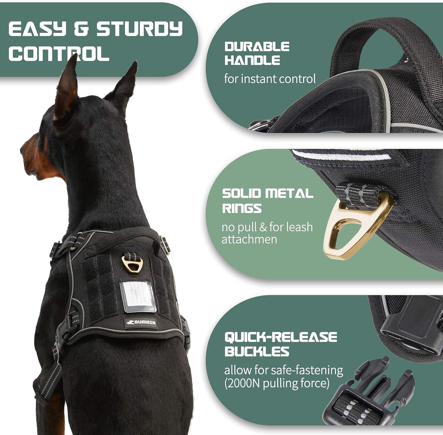BUMBIN Tactical Dog Harness for Large Dogs No Pull, Famous TIK Tok No Pull Dog Harness, Fit Smart Reflective Pet Walking Harness for Training, Adjustable Dog Vest Harness with Handle Black L