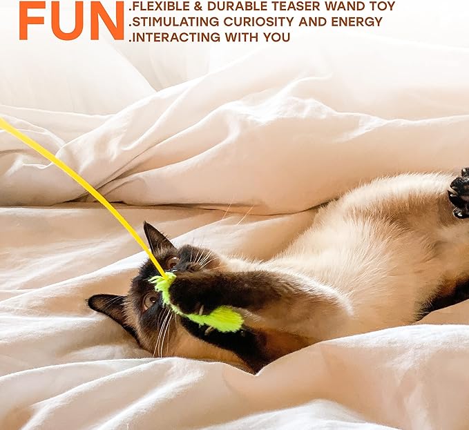 - Super Fun Set - Turn Your Cat's Playtime into Pure Excitement! These kitten toys are everything you need to make your cat’s eyes grow with excitement and joy. The set includes a cute chicken cat toy and 2 cat teaser poles, that will make your beloved furry friend enter into an endless playtime mode