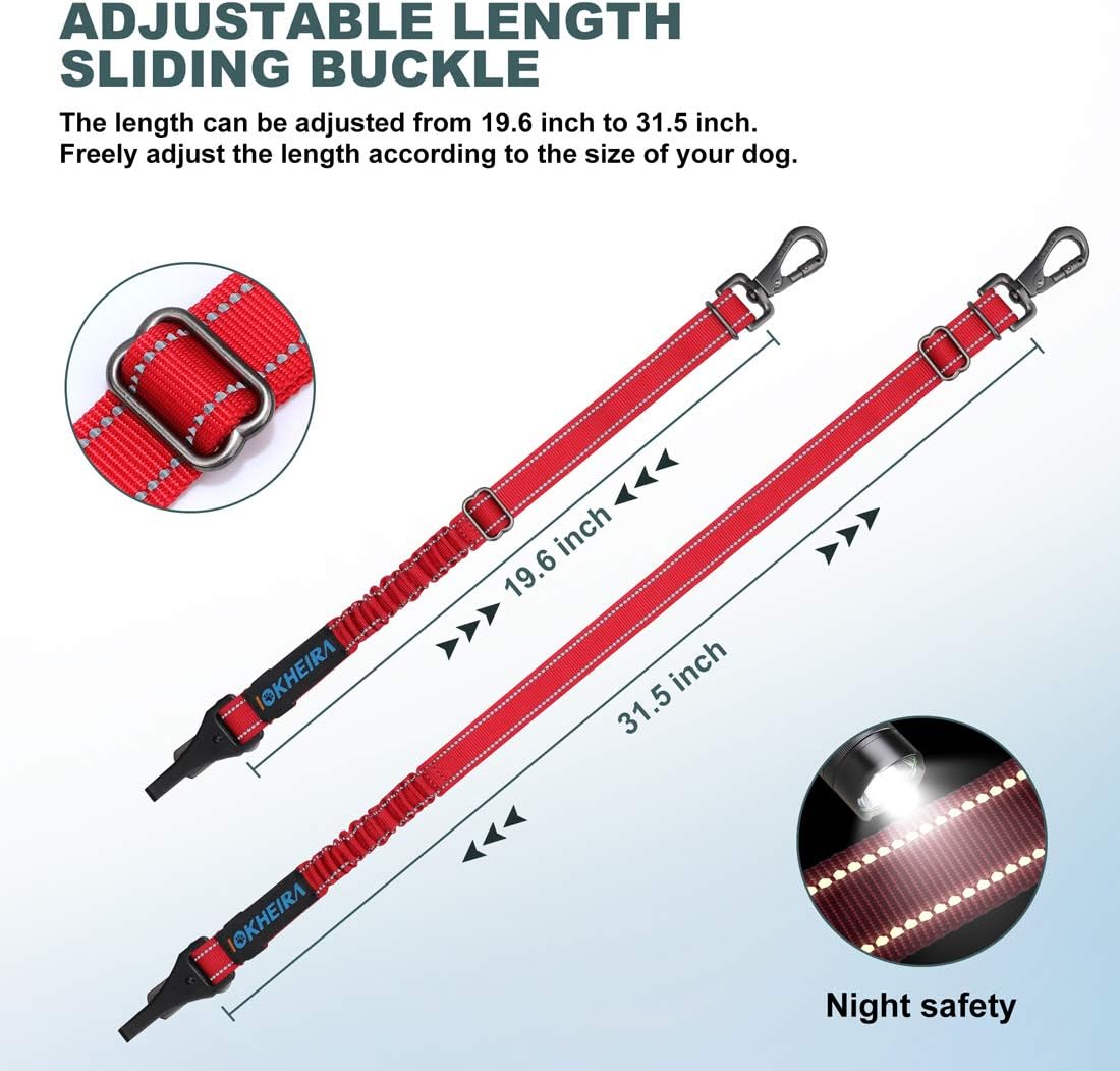 IOKHEIRA Dog Seat Belt 3-in-1 Car Harness for Dogs Adjustable Safety Seatbelt for Car Durable Nylon Reflective Bungee Fabric Tether with Clip Hook Latch & Buckle, Swivel Zinc Alloy Carabiner Red