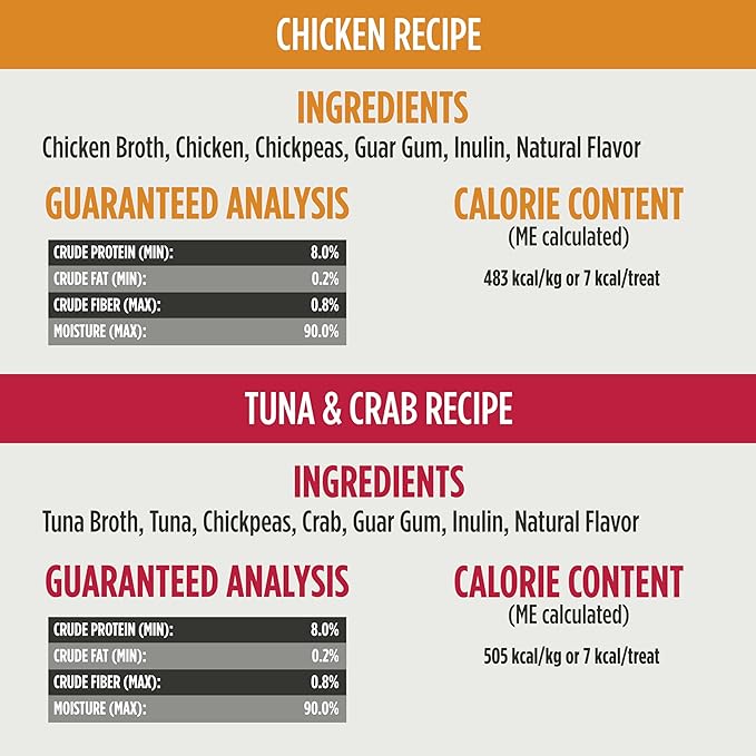 - VARIETY PACK RECIPE - Premium cat treats with a high-moisture content to promote your feline friend's hydration throughout the day. Pack of 10, 0.5 Oz each.