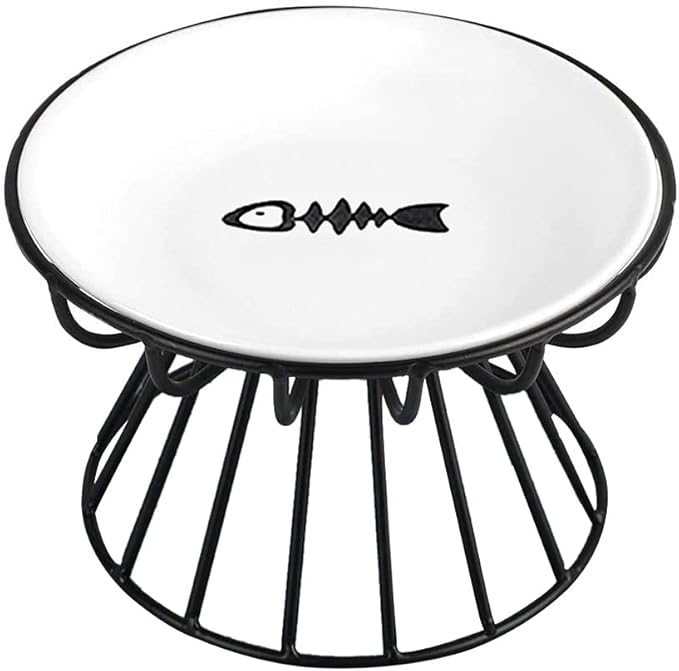 - COMFORTABLE HEIGHT: The cat bowl has a metal stand to rise up food and water to a proper height of 4 inches, which will reduce shoulder and neck burden on cervical spine and ease the back strain for your cats and puppies so that your lovely cat can comfortably eat and drink without bending head down to the ground. This elevated cat bowl also helps facilitate swallowing and improve digestion.