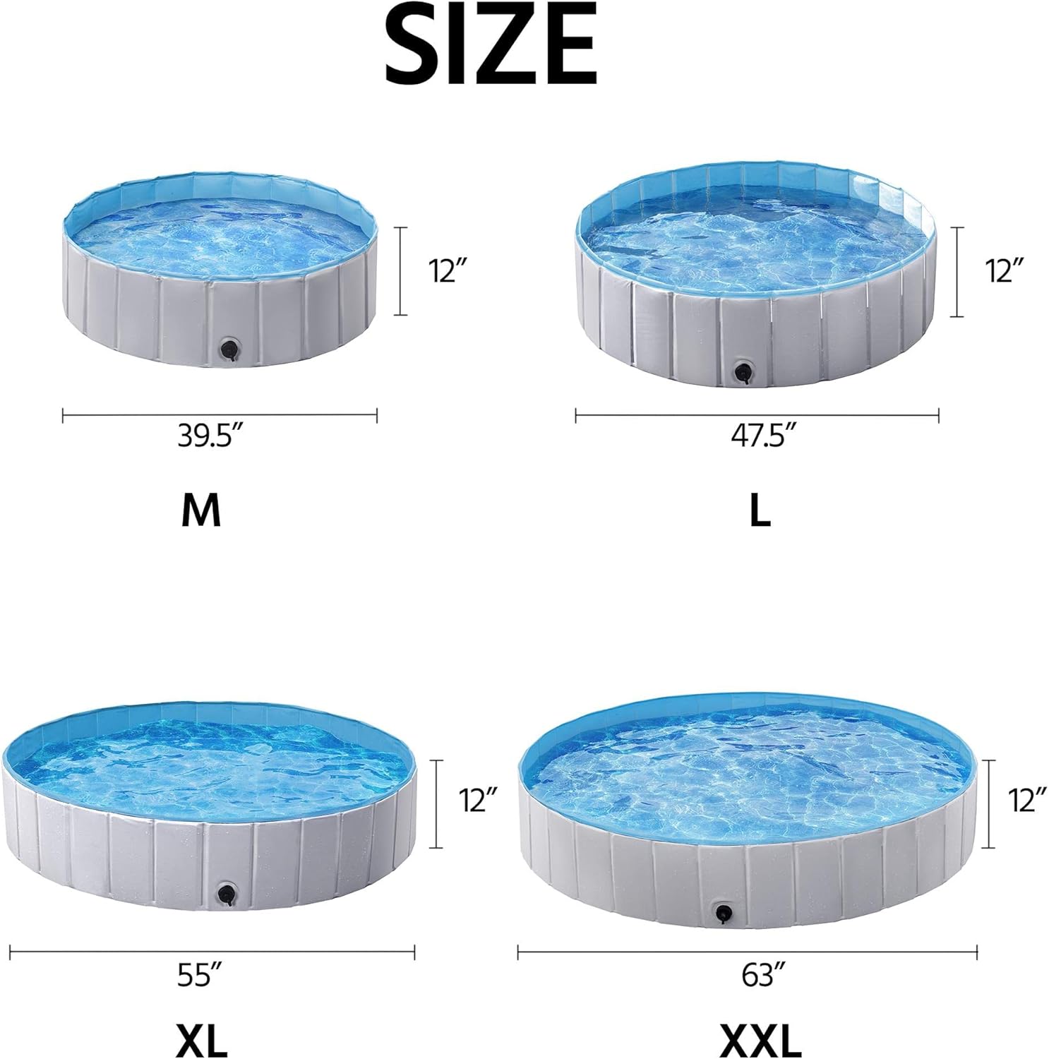 Yaheetech Dog Pet Bath Pool Foldable Hard Plastic Doggie Duck Swimming Pool Collapsible PVC Outdoor Bathing Tub Dog Pools for Large Small Dogs-63 x 11.8 inch,XXL,Gray