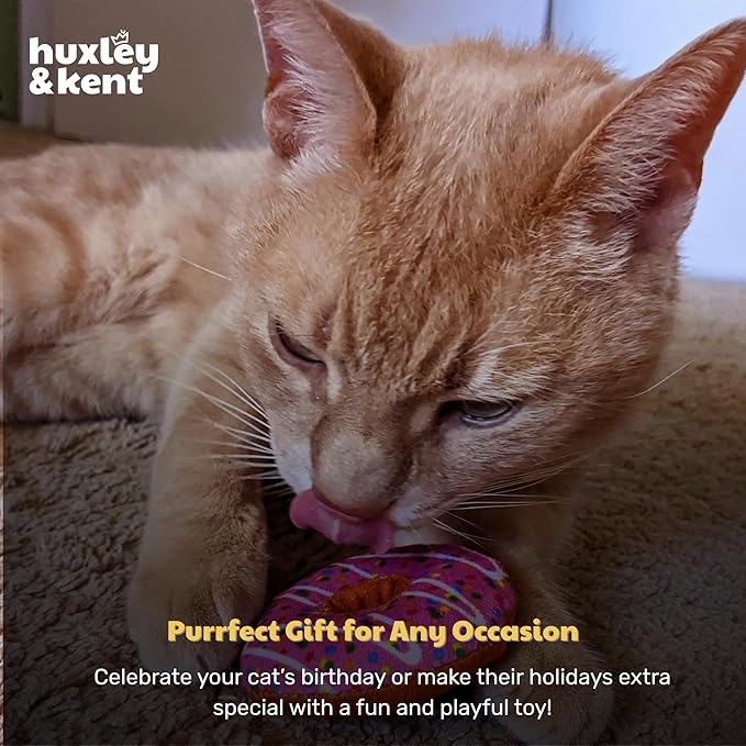 Huxley & Kent Plush Cat Toy - Interactive Catnip Toy for Cats & Kittens - Soft with Crinkle & Catnip - Fun Indoor Play - Strawberry Donut
