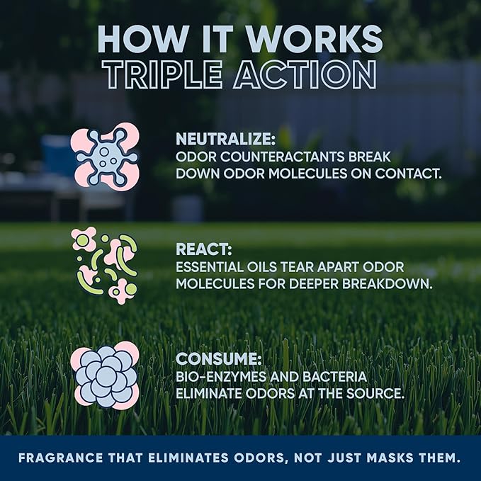 - Multi-Use Formula: Erase pet and animal urine, stool, vomit, skunk, or even garbage odors from your outdoor spaces.
