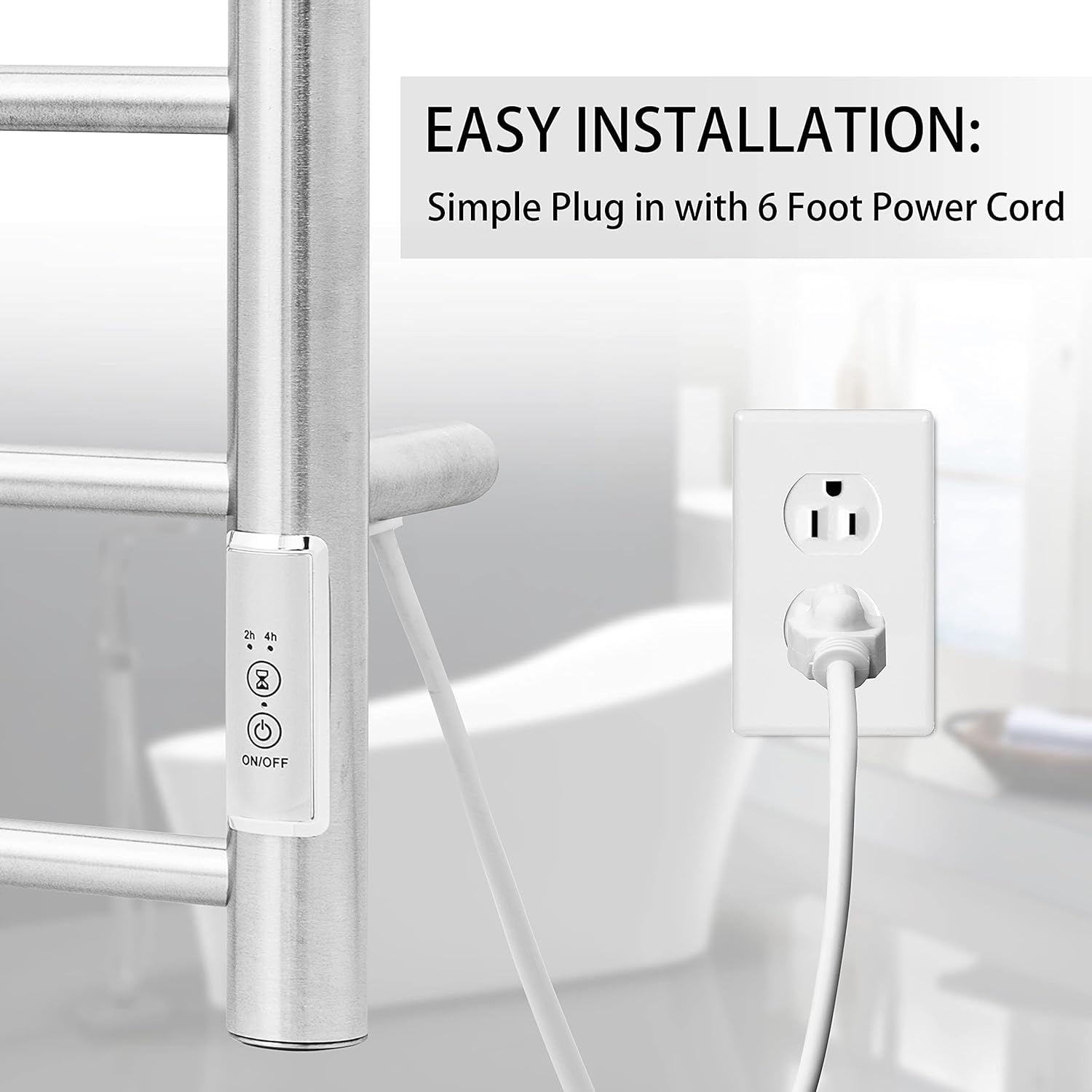 - Premium Quality with Elegant Look: The bath towel warmer is made of durable 304 stainless steel, easy to clean and durable use. IP56 Waterproof standard and wall-mounted design maximizes your floor space.