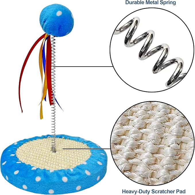 - DURABLE AND STURDY CAT TOWER - Our LovinPup cat toy is made for punching! It will last through all punches and hits from your cat. The high quality spring will simply bounce back and forth from the force of the punches, and will not break or bend like some other cheap cat toys. Best of all, it is easy to assemble! No confusing instructions and many small parts.