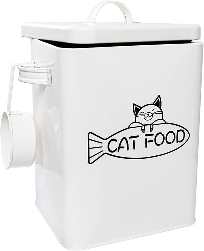 - ✔ EASY TO USE: The cat food storage comes with a sturdy metal scoop that can hang on the side of the storage bin for conveniently transferring the food to dog's or cat's bowl. With metal carrying handles for easy to grasp when using it.