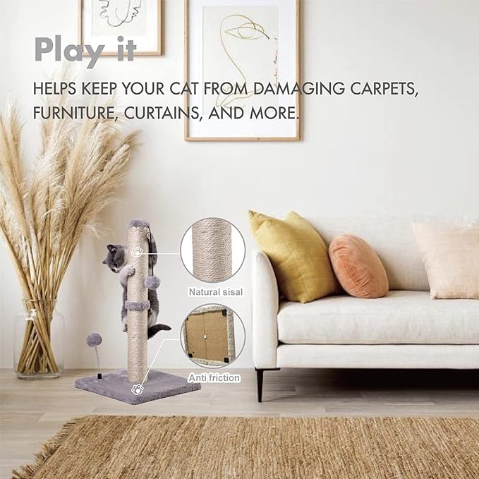 - Protect your furniture - Grab sticks and plush toys combine to attract cats to play and grab, natural sisal is suitable for cats to grab, effectively preventing cats from grabbing furniture.