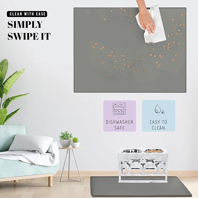 - Hassle-Free Cleanup: Want to reduce cleaning time? Our high durability dog food mat large for saves you the hassle. Just wipe it with a paper towel every 3-5 days, and say goodbye to daily cleanup chores
