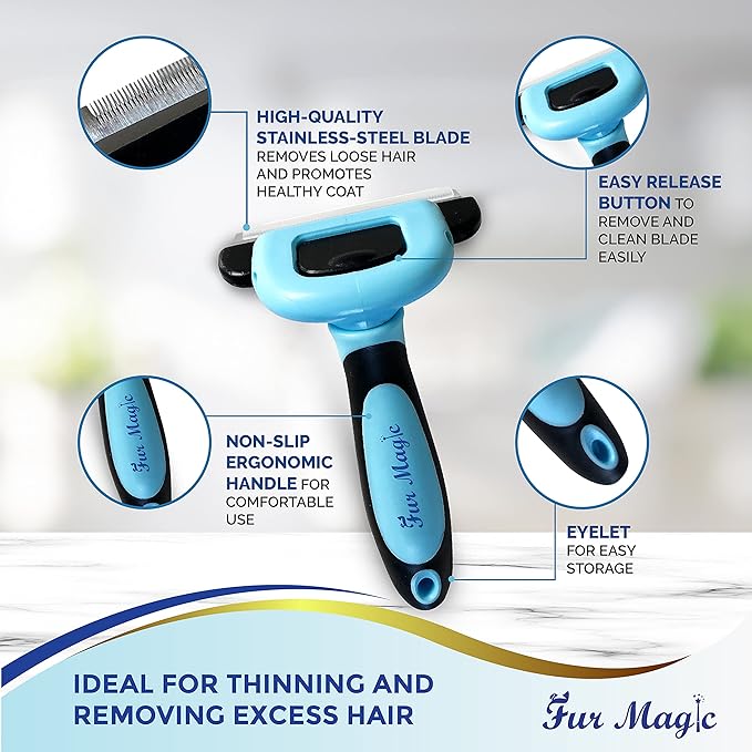 - GROOMING ESSENTIALS BUNDLE: The Fur Magic bundle comes with 2x pet brushes: 1x deshedding tool for dogs and 1x dematting comb. The tools are essential for a complete and rewarding deshedding session that will leave the pet with a healthy-looking and gorgeous coat!