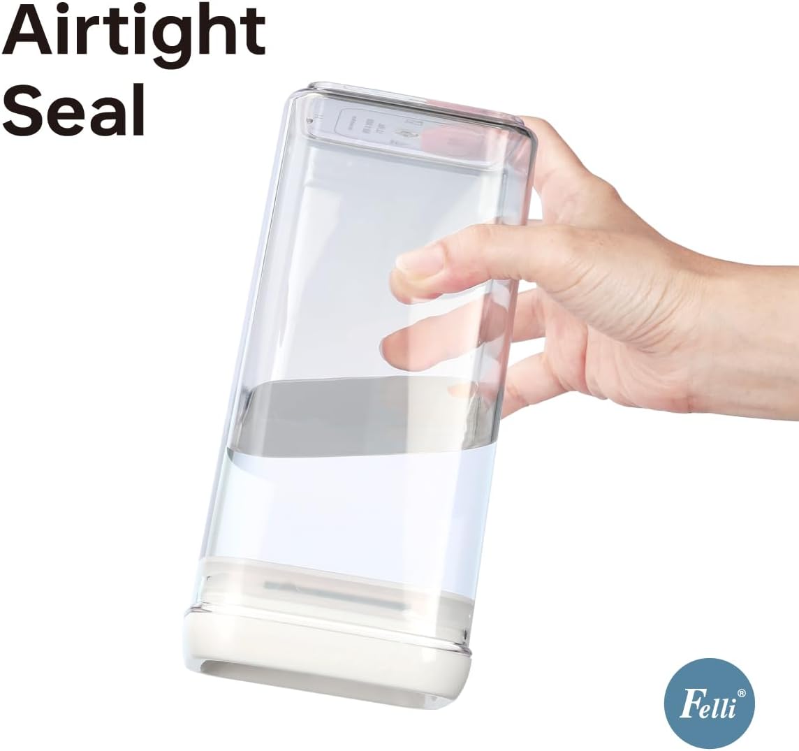 - AVAILABLE IN VARIOUS SIZES & SHAPES: The Felli Flip-Tite container comes in a variety of sizes and shapes to meet different food storage needs. The 4" REGULAR and RECTANGULAR sizes are perfect for organizing small kitchen counters and pantries, making handling and pouring easy. The 5" LARGE size is ideal for storing items like sugar and beans that need scooping. The 6" XL size is specifically designed for storing large quantities of food such as rice, powder, and flour, which require measuring spoons. We offer a versatile storage solution to suit all your needs.