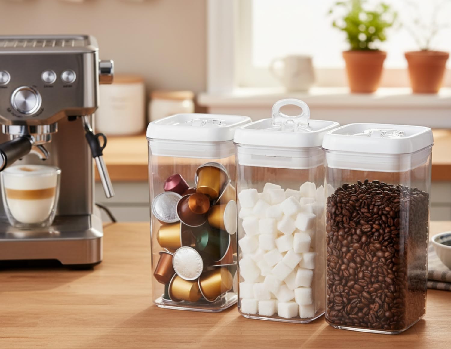 - 3 PC SMALL SPACE ORGANIZATION - BEGINNER SET: This set includes 3 x 4 inch Regular-L sized containers (1.3 quart 1.2 liter each), ideal for organizing small pantry spaces in RVs, apartments, condos, and townhouses. Each container is perfectly sized to store common household staples such as candy, coffee, nuts, snacks, beans, chocolates, and raisins. They're also suitable for storing pet treats for dogs and cats. These versatile containers can be used for organizing makeup, bathroom essentials, office supplies, and craft materials.