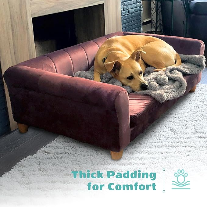 CRITTER SITTERS 42-in. Elegant Brown Faux-Velvet Rectangular Dog Sofa for Medium and Large Dogs, Elevated Plush Dog Couch