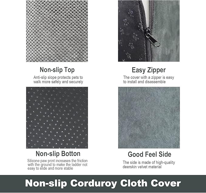 - Easy to Assemble and Clean: The stairs are made of 30D high-density, high-resilient foam. The rebound foam stairs are stable and not easy to deform, and have good supportability, so there is no need to worry about bumps and protect the safety of pets. The stair cover is made of high-quality non-slip corduroy, removable and machine washable.