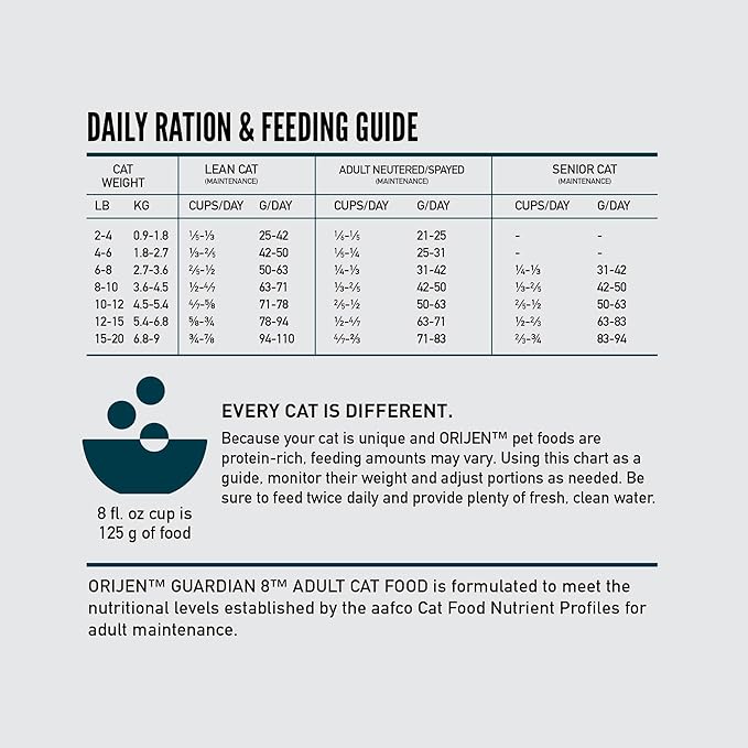 - One (1) 4 lb bag of ORIJEN GUARDIAN 8 Dry Cat Food with Fresh and Raw* Animal Ingredients