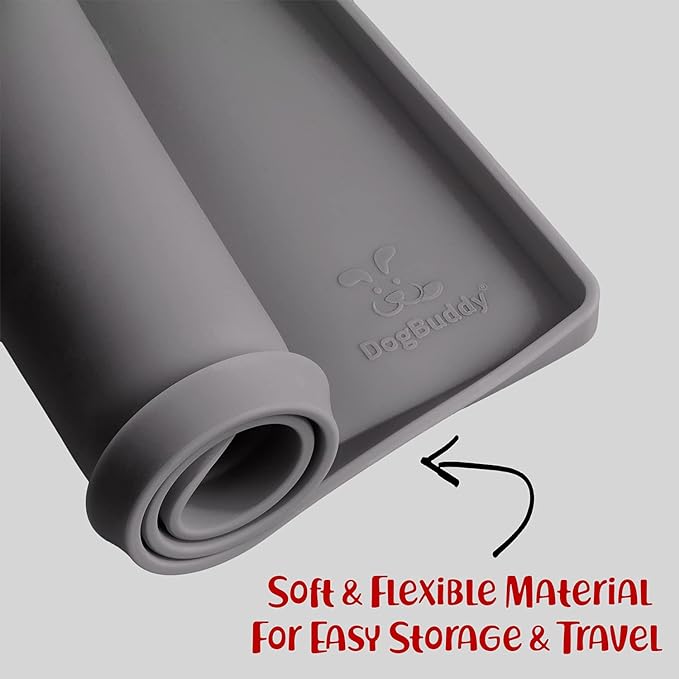 - Easy To Use: Smooth surface of DogBuddy Dog Food Mat is better at preventing dog bowls from sliding due to a stronger contact with the bowl. The mat can be rolled up for storage.