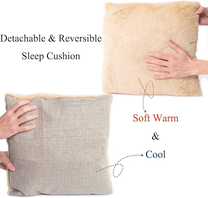 Cat Bed - Cat Cave House Tent with Washable Cushioned Pillow, Soft Kitten Beds, Pet Furniture (Large, Beige)
