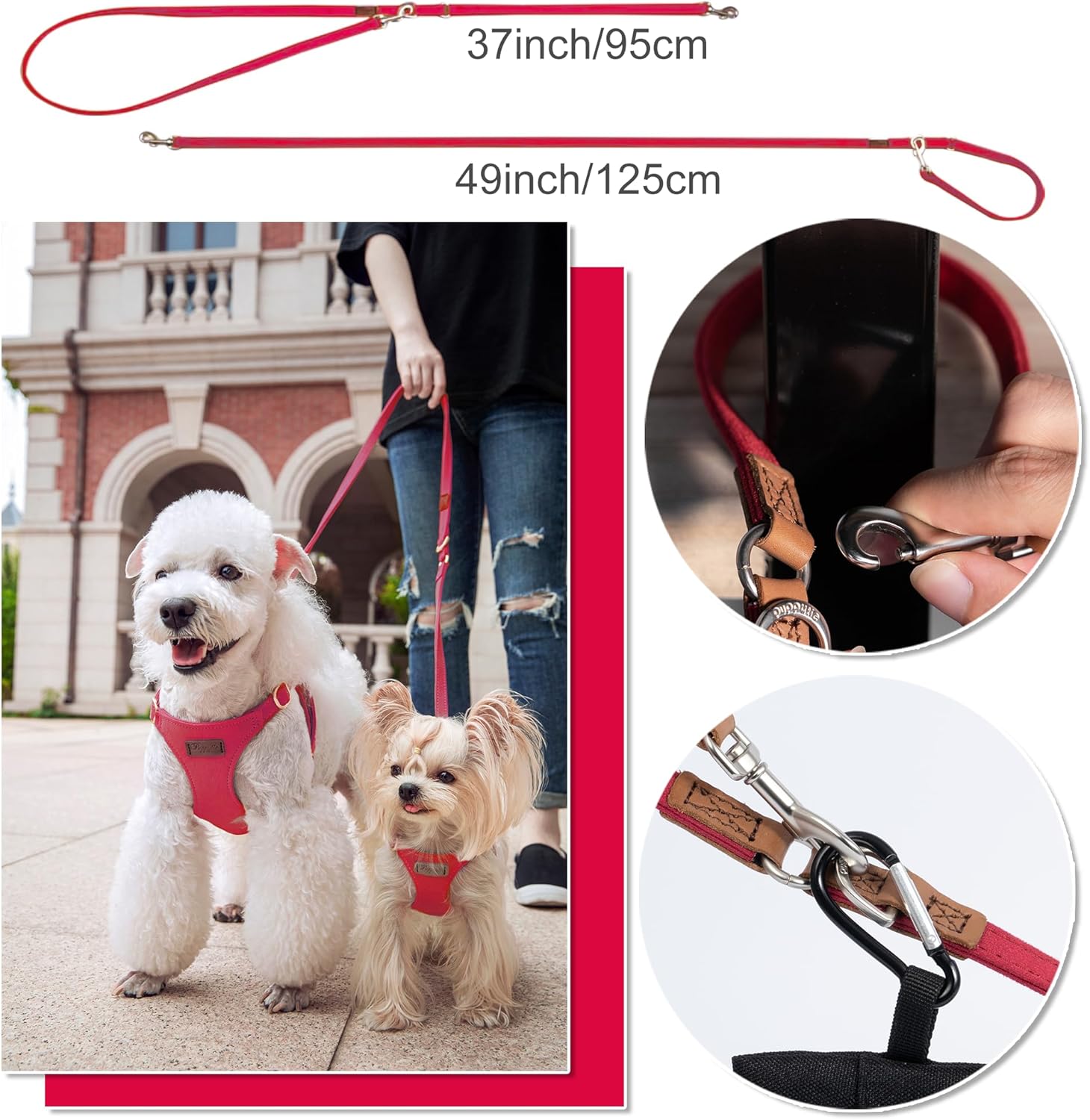 Puppytie No Pull Small Dog Harness with Multifunction Dog Leash,Lightweight Soft Adjustable No Choke Escape Proof Pet Harness Vest Pet Harness Vest,red-Camellia,S