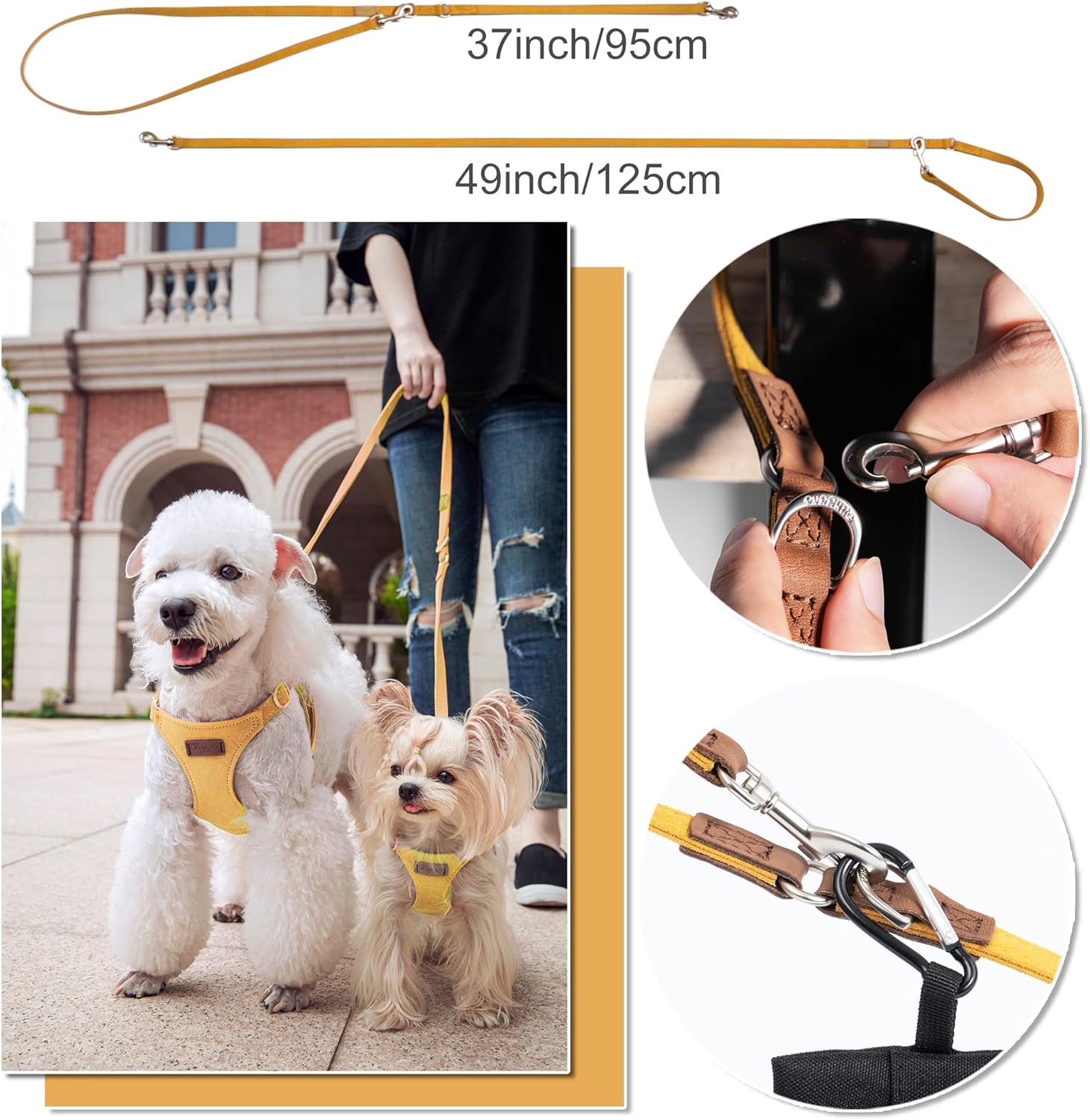 Puppytie No Pull XXS Puppy Harness with Multifunction Dog Leash,Soft Adjustable No Choke Escape Proof Pet Harness Vest,Yellow,XXS
