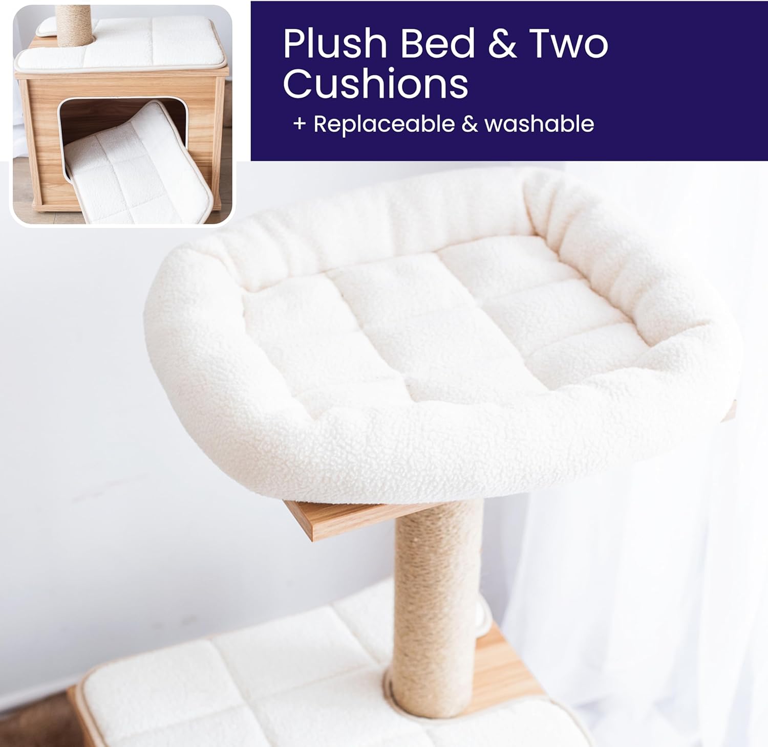 Catry 29.7" Tall 3 Level Laminated Wood Cat Tree with Large Base Condo, 2 Paded Steps, Natural Jute Scratching Post, Sturdy and Easy to Assemble for Small Cat, Brown