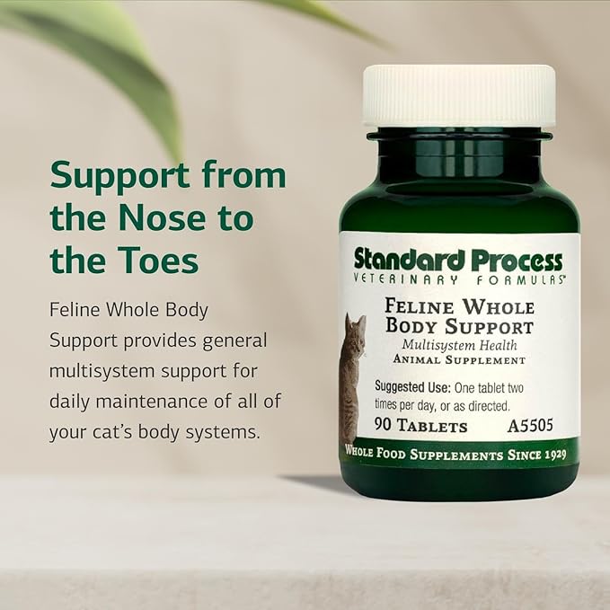 Standard Process Inc. Feline Whole Body Support - Nutritional Cat Supplement for Multisystem Support - Feline Daily Maintenance Supplement - 90 Tablets