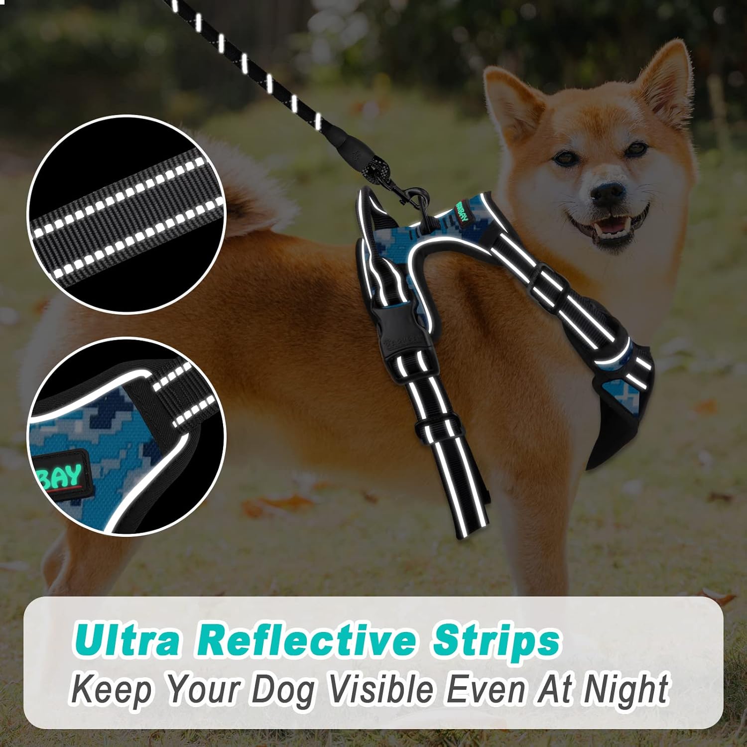 BARKBAY No Pull Dog Harness Large Step in Reflective Dog Harness with Front Clip and Easy Control Handle for Walking Training Running(Blue camo,L)
