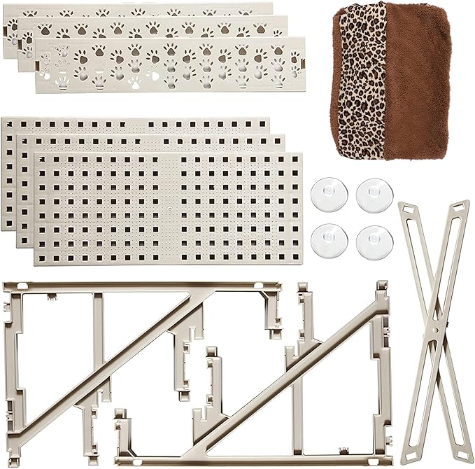 yofit Doggy Steps - Non-Slip 3 Steps Pet Stairs for Cats and Dogs, Foldable Plastic with Washable Carpet Holds Up to 50 lbs (Leopard)