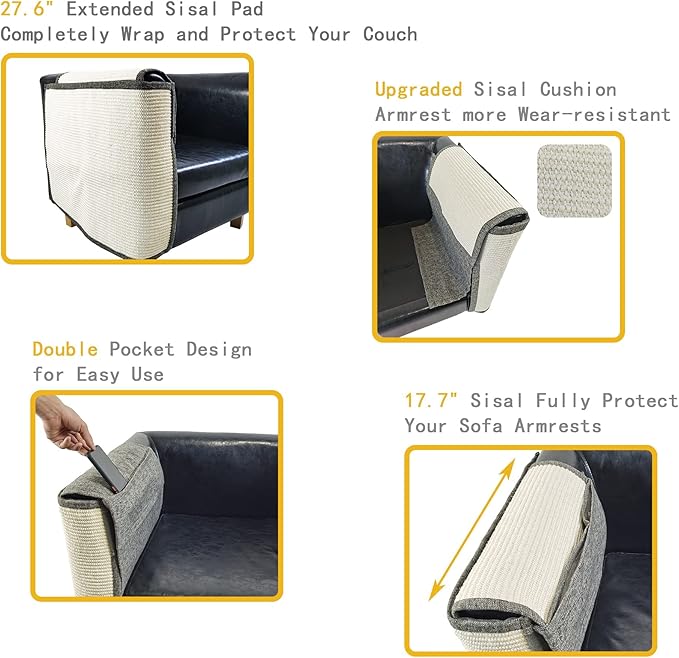 - 2022 UPGRADED MODE - Sisal part width increased from 23.6" to 27.6", add sisal 17.7" x 11"for armrest of sofa,add two grocery bags at the same time.This version can be used whether the sofa cushions are lifted or not