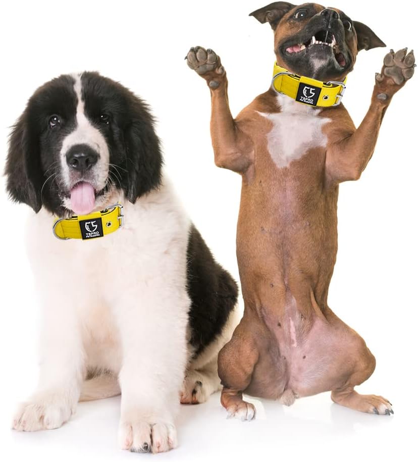 TSPRO Tactical Dog Collar 1.5 Inch Wide Thick Dog Collars with Heavy Duty Metal Buckle, Durable, Strong, Adjustable for Medium to Large Dogs (Yellow M)