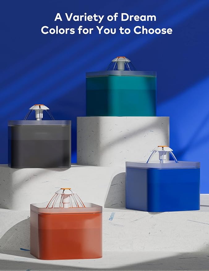 - 【3 Water Flow Designs】This water fountains for cats indoor has three water flow modes: flower waterfall, flower bubble and soft fountain. Each water flow design can meet the different needs of pets. This toy-like design, various forms of water flow, and bold colors can encourage your cat to drink water, which is beneficial for your pet's kidney health.