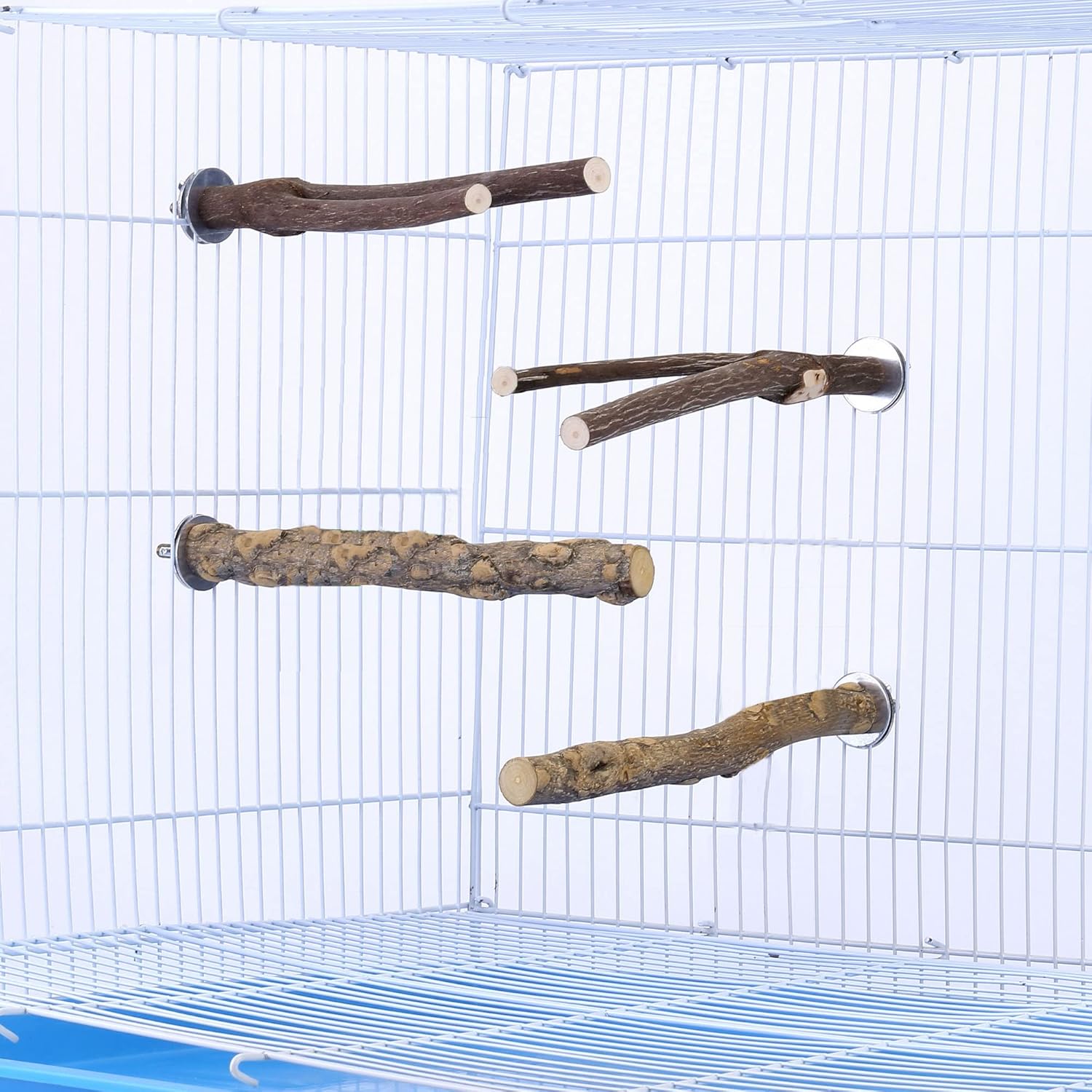 - 【Size】: Y-shaped bird perch*2, straight-shaped bird perch *2, approx 7.9” long and 0.8” in diameter. Each wood perch is able to accomodate 3-4 birds at the same time, perfect for budgies, conure, parakeets, cockatiels, lovebirds or other small birds.