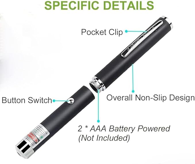 - Multipurpose: This is a laser toy for cat and dog pet training interaction or teaching remote control. Super easy to carry around. This laser pointer demonstrator can be used for teaching, demonstration, conference, entertainment, cat teasing, etc.