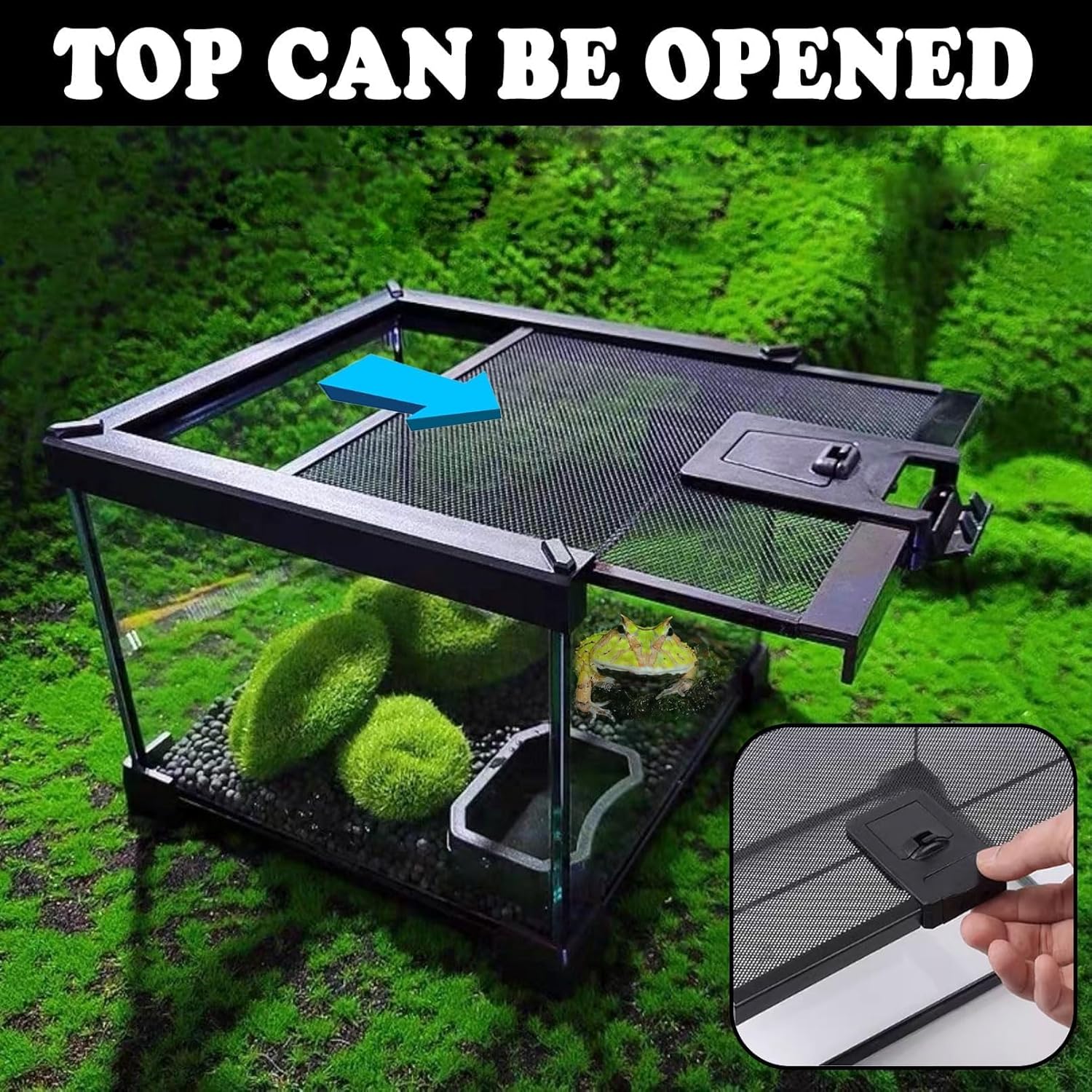 - 【🦎Metal Mesh Top】Our reptile glass tank is topped with a removable metal mesh that is ventilated and breathable, so your pet can enjoy optimal airflow. Finer metal mesh wires allow more UVA, UVB and infrared heat to penetrate. You can place a heater on top of the metal mesh.