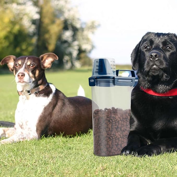 - Upgraded Large Pour Spout with Measuring Cup – We changed the mold to make the pour spout is large enough to pour out the big dog Food. You can pour out the food easy and fast now. The new upgraded Measuring Cup is also easy to screw on the spout now