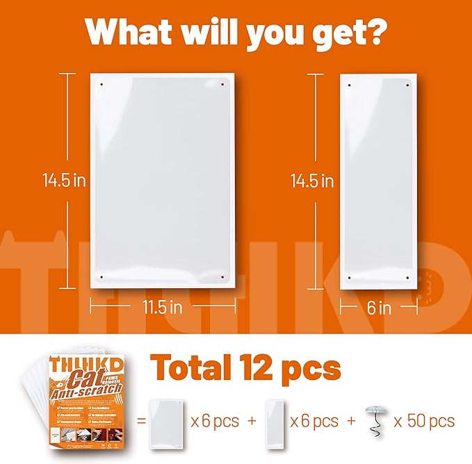- Furniture Protector : The single-sided sticky sheets anti scratch furniture protectors discourage cats from scratching the couch. Includes 6Pcs(14.5 inch * 11.5 inch) & 6Pcs(14.5 inch * 6 inch)