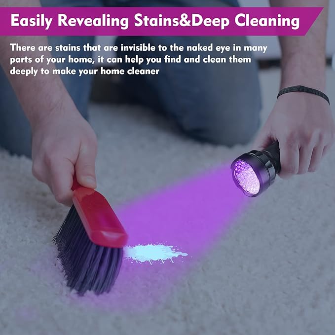 - Perfect Gift: An excellent choice for Halloween, Thanksgiving, or Christmas, making it a thoughtful gift for anyone who appreciates practicality and cleanliness. Toilets and bathrooms are places where stains tend to appear, this UV blacklight flashlight can help you find stains so that you can perform a deep clean and keep your home clean and hygienic; It can also be widely used in other scenarios such as cars, and hotels