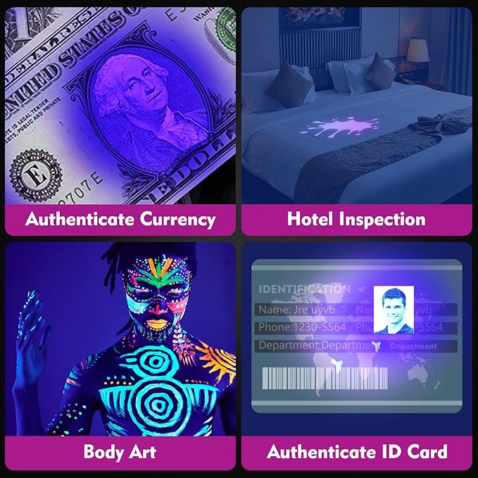 - Multipurpose & Practicality: This 51 LED UV flashlight is not just for cleaning! It doubles as a scorpion detector, counterfeit currency verifier, and can reveal hidden ink on passports or other official documents, illuminate body art, check bed bugs, etc.