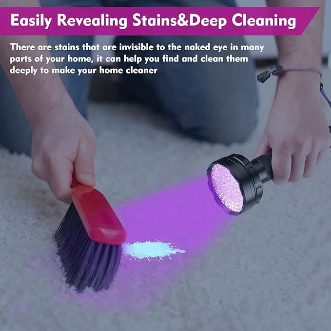 - Multipurpose & Practicality: This 100 LED UV flashlight is not just for cleaning! It doubles as a scorpion detector, counterfeit currency verifier, and can reveal hidden ink on passports or other official documents, illuminate body art, check bed bugs, etc.