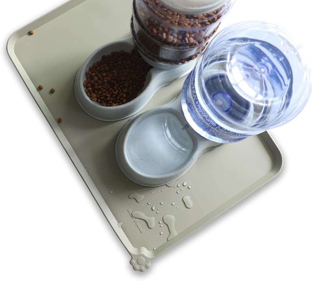 Hoki Found Large Silicone Non Slip Pet Food Mats - Bowl Placemats for Dog Cat - Waterproof - Cream Green