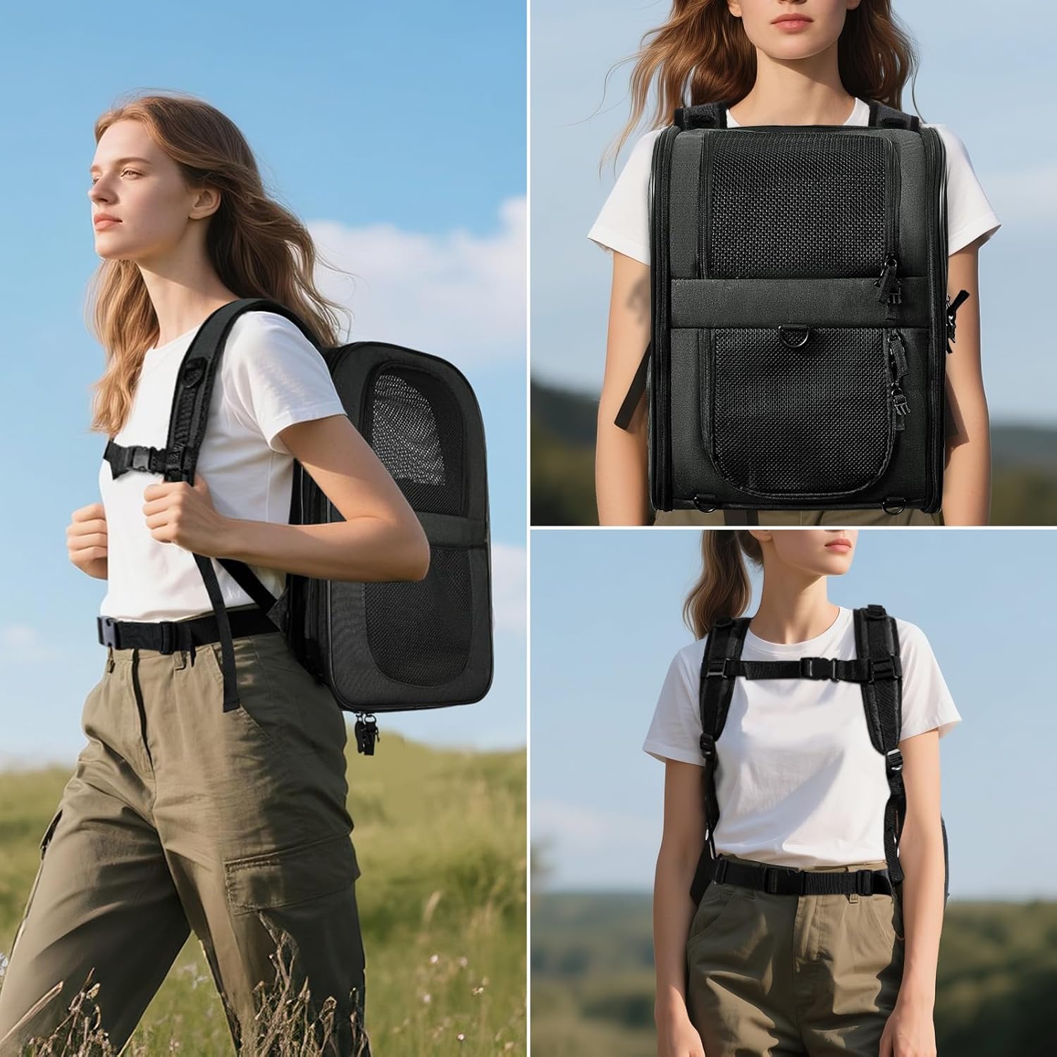 - ESCAPE PROOF- The last thing you want is an escaped pet running around the airplane cabin or outdoors. APOLLO WALKER pet backback carrier keeps your pet safe and secure while flying, walking, cycling, or hiking with claw-proof mesh and reinforced zippers. Carrier also has a leash tether to attach to your dog or cat’s collar if you decide to open the top window to let your pet stick their head out.