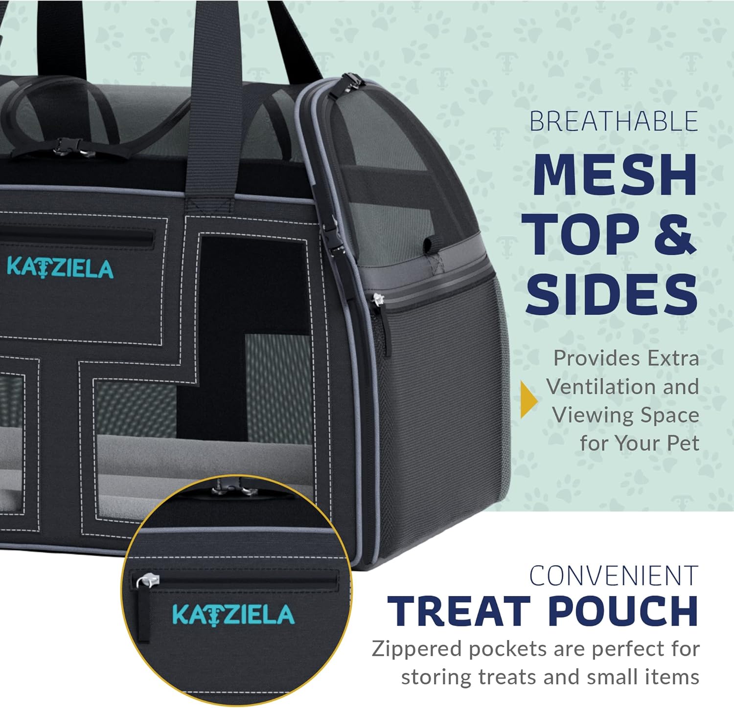 - AIRPLANE FRIENDLY: Designed to meet TSA and most airlines standards, this pet travel carrier can be taken with on most air plane flights! Because it is soft sided, it can be placed comfortably under the seat in front of you.