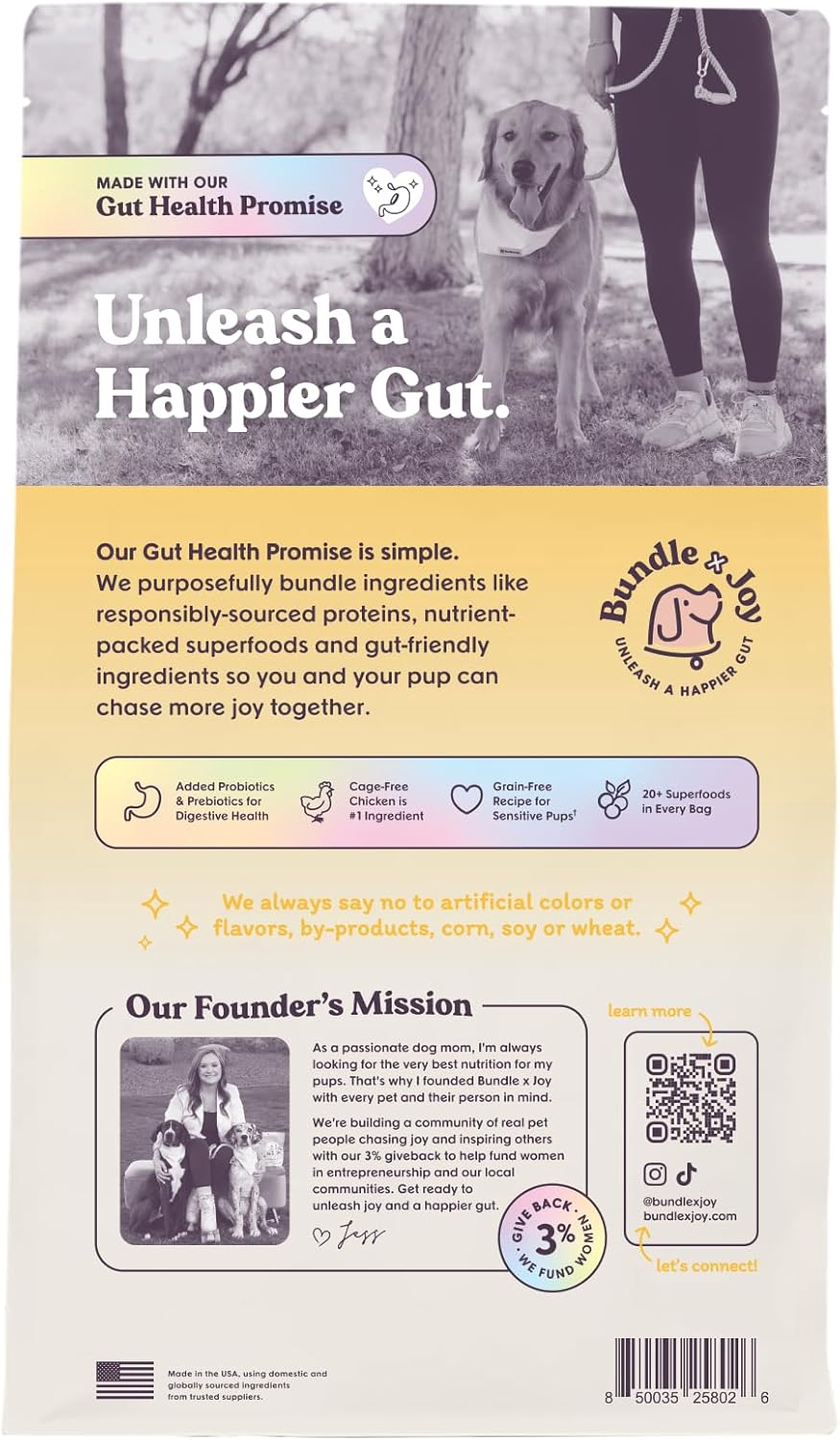 - FOR ALL ADULT BREEDS AND SIZES: Bundle x Joy dog food has omega fatty acids to support healthy skin and a shiny coat and probiotics to support digestion. The kibble pieces are small enough for small breed dogs to enjoy.
