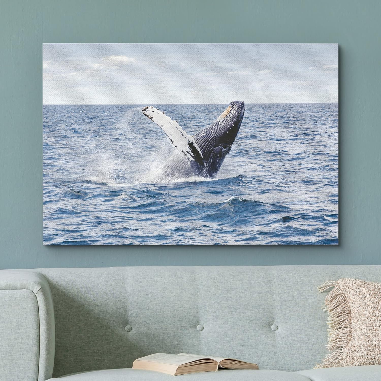wall26 Canvas Print Wall Art Tropical Ocean Sea Water Horizon Blue Whale Nature Animals Photography Realism Rustic Scenic Landscape Wilderness Colorful for Living Room, Bedroom, Office - 16"x24"