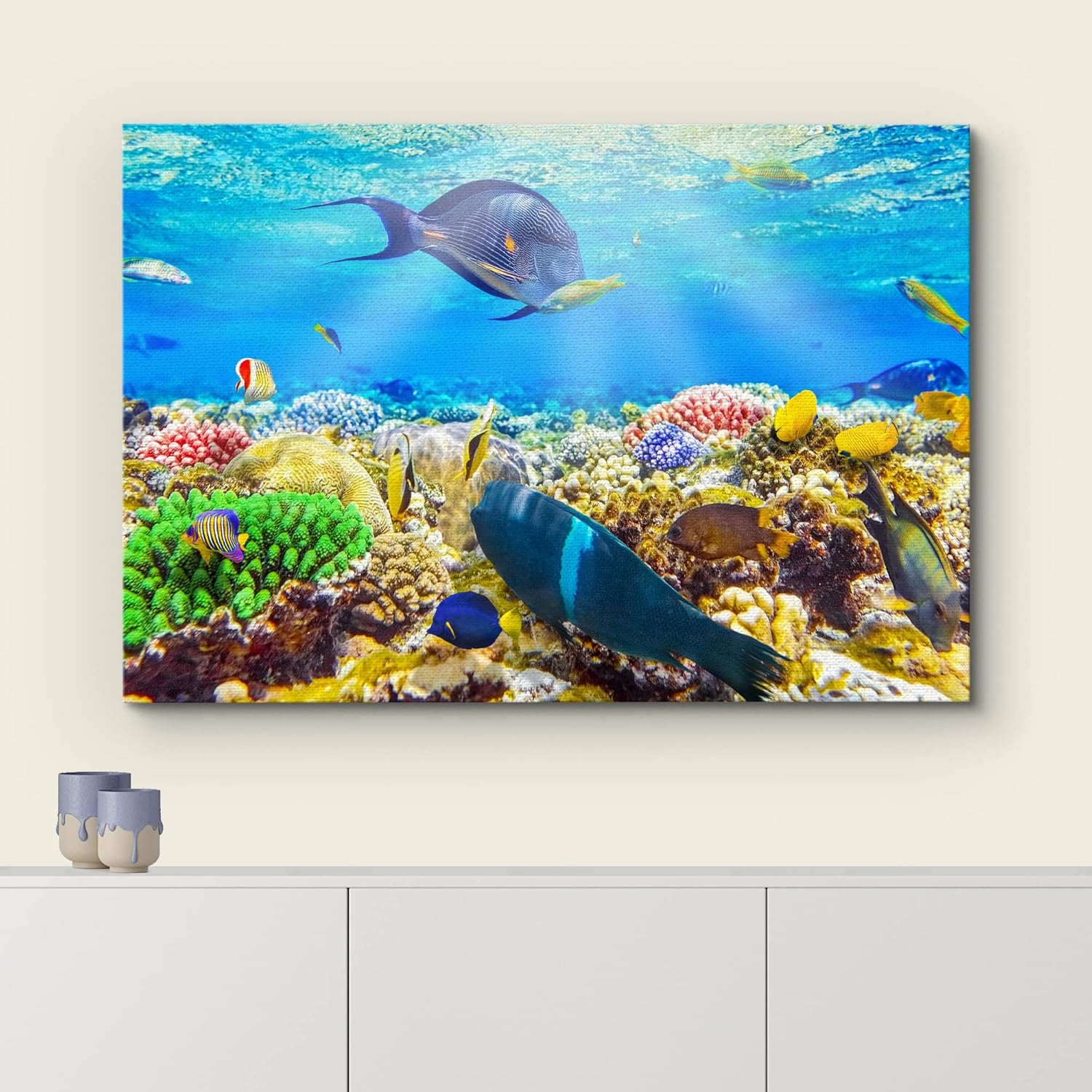 wall26 Canvas Print Wall Art Sunlight Ocean Sea Coral Reef Anemone Fish Nature Animals Photography Realism Rustic Scenic Landscape Wilderness Earth for Living Room, Bedroom, Office - 12"x18"