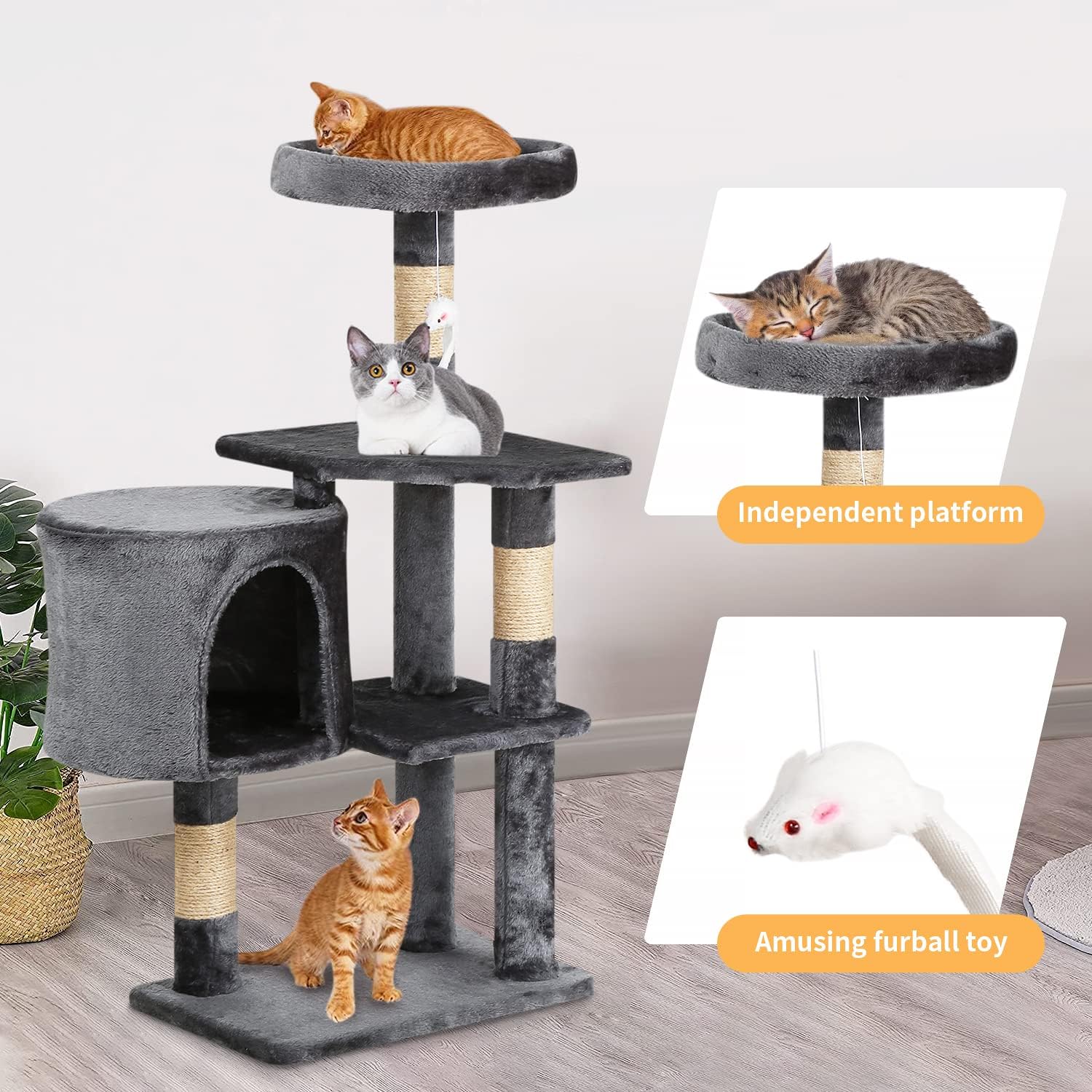 BestPet Cat Tree 36 inch Tall Scratching Toy Activity Centre Cat Tower Cat Condo Multi-Level Furniture Scratching Posts for Indoor Cats,Light Gray