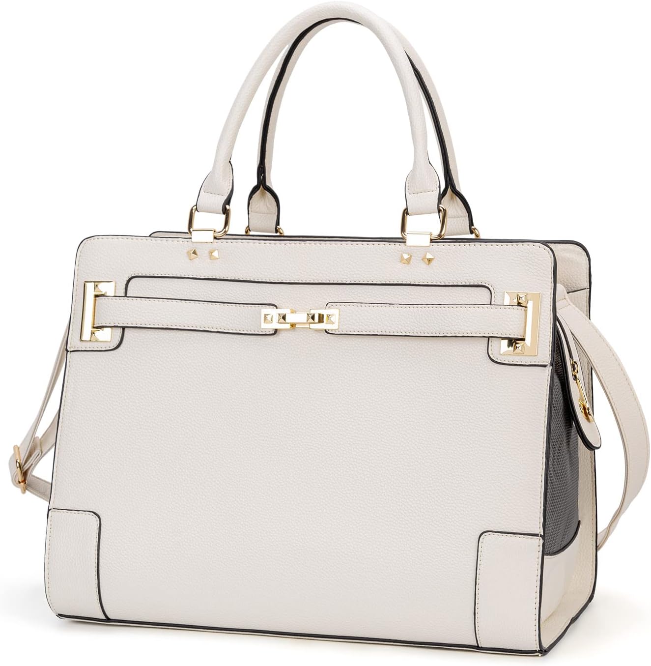 Fashion Pet Carrier Dog Cat Carrier Purse Soft-Sided Leather Handbag Pet Tote Bag for Small Dogs Puppy and Cats TSA Airline Approved (Beige)
