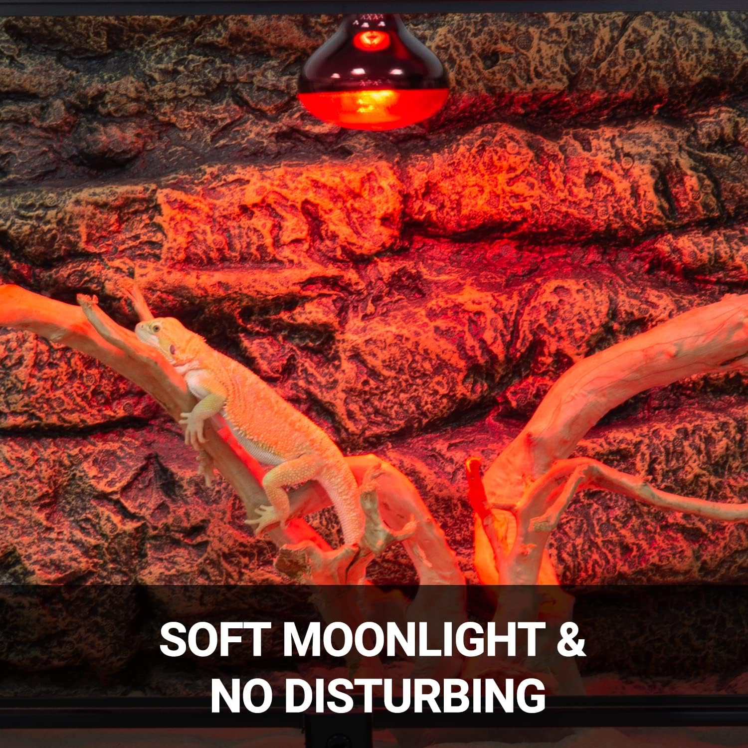 - Red Heat Lamp Bulb: The heat bulb is all weather heating source, provide adequate heat for reptiles and promote their activity. The soft reddish light does not disrupt normal activity
