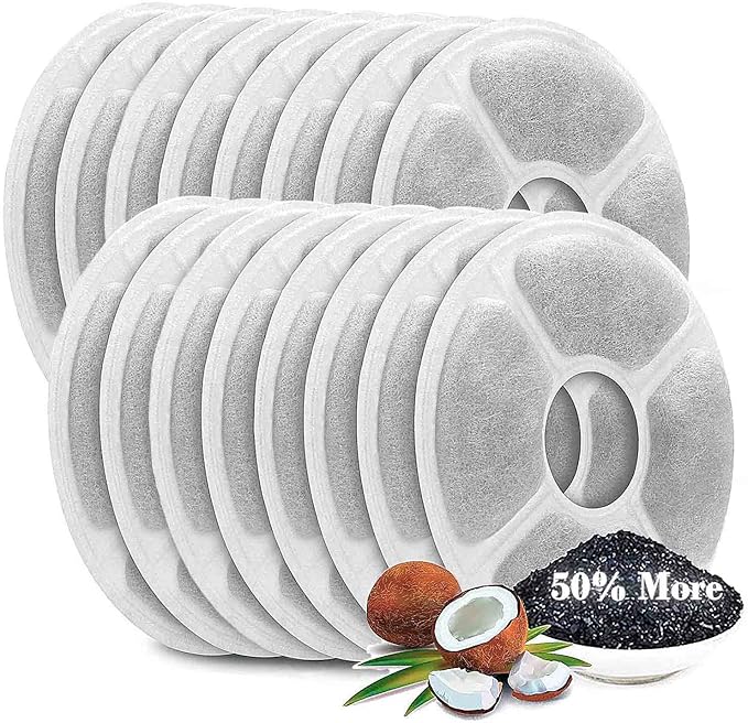 - 【Triple Filtrations】 - Top quality cotton and premium activated carbon help to get rid of chlorine, impurities and odors, catch hair and debris,soften water, make water in the fountain fresher, better-tasting.The better-tasting water will encourage your pets to drink more, helping them replenish moisture, keep your pet away from urinary calculi and keep healthy.