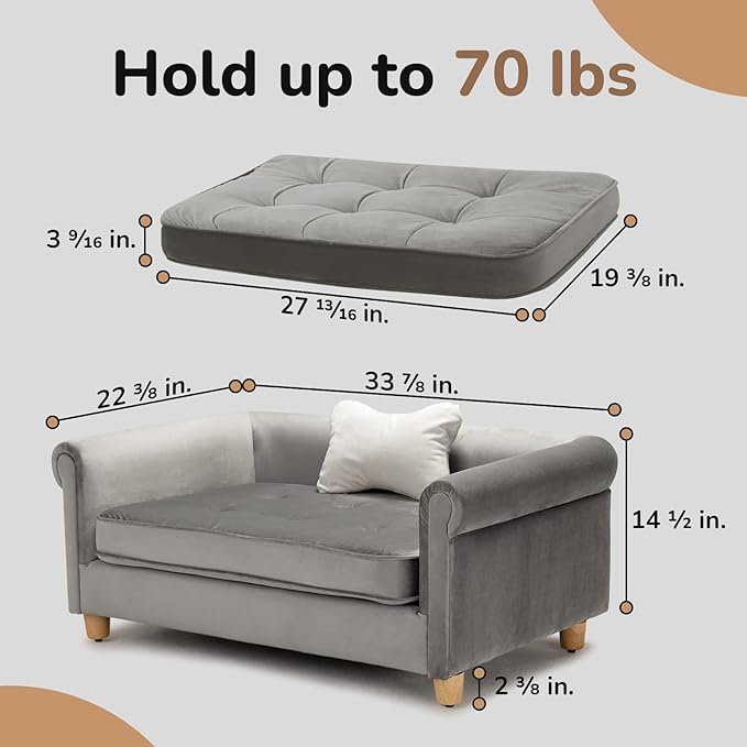 - HOLDS UP TO 70 POUNDS: The dog sofa is sturdy with a strong wood frame; Solid rubber wood legs with anti slip levelers protect the pet sofa bed for medium dogs from being flipped or moved