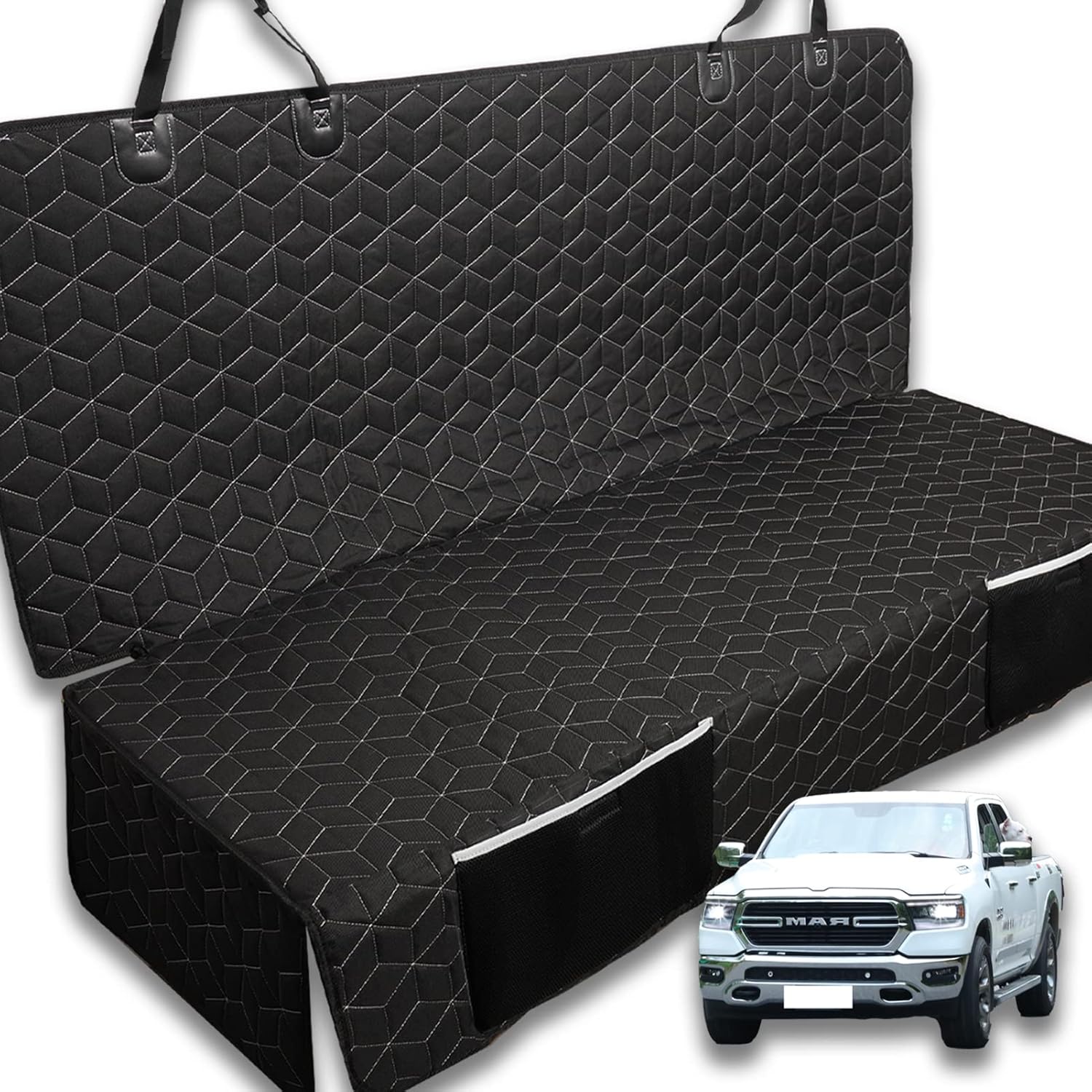 - CUSTOMIZED FOR TRUCK: Meginc car dog seat covers are uniquely designed and customized for truck. Such as Ford F-Series/Ram Pickup/Chevrolet Silverado/GMC Sierra/Toyota Tacoma/Chevrolet Colorado/Toyota Tundra/Ford Ranger/Jeep Gladiator/Nissan Frontier/Honda Ridgeline/Nissan Titan/GMC Canyon/Ford Maverick/Hyundai Santa Cruz. Suitable for middle size pickup